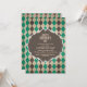Ein braunes, bräunliches und grünes Raute-Muster schafft diese festliche Vatertag-Einladung. Es wird mit einem dekorativen blüh überlagert, der die Botschaft "Glücklicher Vater" enthält.