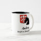 Niedliche und coole Tasse mit Ritter- und Schilddesign. Rot, Schwarz und Weiß. Personalisieren Sie mit Ihrem Ritter!