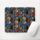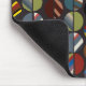 Dieses Mauspad hat ein modernes Design aus ovalen Halfen, einige solide und einige gestreift, in maskulinen Farben auf einem Feld von dunkelgrau.