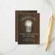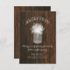 Eine rustikale und elegante Hochzeitskarte mit einer Abbildung eines Maurerkirsches aus dem Atem eines Babys über einem inspirierten Hintergrund aus Stallholz.