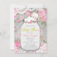 Adorable Mädchen Vintage Rose Mason Glas mit rosa Blume und Spitze Baby Dusche Einladung. Die Babyduscheinladung für ein süßes Girl lässt sich leicht an Ihre Veranstaltung anpassen, indem Sie Ihre Details in den Schriftart-Stil, Farbe und Wortlaut Ihrer Wahl einfügen.