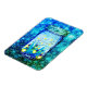 Ein Maurerkirsch aus glühenden Glühwürmchen oder Blitzen vor dem sternenreichen Nachthintergrund. Ein elegantes ländliches Design. In den Farben Blau, Grün und Gelb.