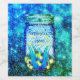 Ein Maurerkirsch aus glühenden Glühwürmchen oder Blitzen vor einem sternenstarken Nachthintergrund. Ein elegantes ländliches Design. In Blau, Grün und Gelb. Die Personalisierung ist optional.
