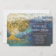 Blaue Opulenz Elegante Moody Fairy Lights Woodsy Forest Mason Jar Aqua Blue und Gold Fairy Tale Woodland Romantische Eichen Bäume Einladungen Hochzeiten. Zauberhafte Lichter, Streichlichter und glühende Mason-Jars. Gold Confetti und Wirble Goldwurzeln der Liebe machen eine verzauberte Waldgrottenhochzeit.