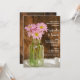 Einladend zu einer Ansammlung vor der Hochzeit, in der die Braut und der Bräutigam mit dem charmanten Mason Jar und Pink Daisies Country Wedding Probe Dinner Einladung geehrt werden. Dieses rustikale und schicke Party zum Thema Ranch lädt mit einem malerischen Blumenfoto eines Glaskonservenglases, gefüllt mit rosa, blühenden Blume und einem verwitterten braunen Holzfußboden ein. Perfekte Inspiration für eine lässige Veranstaltung zum Party im Bauernstil.