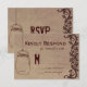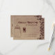 Eine rustikale Landkarte für die Hochzeitsantwort auf einem Hintergrund aus Vintagem Look Papier und Schnörkeln mit einem hängenden Maurerkrug. Vollständig anpassbar mit Ihren eigenen Daten. Die Rückseite der Einladung hat "UAWG". Ideal für Hochzeiten auf dem Lande und für Stallhochzeiten. Hier ist das passende Set für die Einladung zur Hochzeit:
