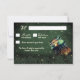 Mason Jar Rustic Firefly Wedding RSVP Cards - ein lebendiges Glas mit Glühwürmchen, umgeben von Grasblättern auf grünem Grundumboden.