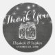 Gastgeschenk Hochzeit Vielen Dank Sticker Template - Elegante Mason Jar & Vintag Streichleuchten mit Grunge Black Chalkboard Hintergrund. Ein perfektes Design für Ihren großen Tag. Alle Textstile, Farben, Größen können an Ihre Bedürfnisse angepasst werden!