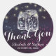 Gastgeschenk Hochzeit Vielen Dank Sticker Template - Elegante Mason Jar & Vintage String-Leuchten mit Lila Sparkle Bokeh Licht Hintergrund. Ein perfektes Design für Ihren großen Tag. Alle Textstile, Farben, Größen können an Ihre Bedürfnisse angepasst werden!