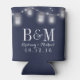 Diese rustikale Braut kann cooler sein mit der Phrase "To Have and To Hold to Behalt your Drink Cold" auf einem marineblauen Hintergrund, umgeben von glühenden Maurerkirschen und Saitenleuchten. Passen Sie die andere Seite mit Ihren Initialen, Namen und Hochzeitstermin an. Die Hintergrundfarbe ist vollständig an Ihre Hochzeitsfarben angepasst.