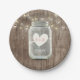 Mason Jar & String Lights Rustic Barn Wood Wedding Pappteller
