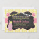 Das Motto der Einladung ist köstlich. Ein rosafarbener Mason Jar mit Zitrone, Blume aus Birnen, Kalkpappe und gelbem Damast-Muster. Die Rückseite ist ein passender rosa und weißer Polka-Punkt.