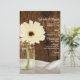 Das bezaubernde "Mason Jar" und "White Daisy Country Wedding Menu" mit den Details der Mahlzeit, die Sie bei Ihrem Hochzeitsessen oder Mittag servieren, indem Sie den Salat oder den ersten Gang, Vorspeise oder zweiten Gang und Dessert oder dritten Gang hinzufügen. Personalisieren Sie es mit den Namen der Braut und des Bräutigams, dem Ort des Empfangs und dem Datum der Ehe. Sie können den Text oder den Schriftart ändern, um Ihre Bedürfnisse im Brauchtum zu erfüllen. Dieses gemütliche, rustikale und schicke Hochzeitsmenü mit Blumen und Blumen ist in einem digitalen Bild mit einer Glaskonservendose mit weißer, blühender Blume und einem braunen, verwitterten Stallholzhintergrund untergebracht. Ideal für Paare, die einen lässigen und dennoch eleganten ländlichen Landhausstil, Party, Ranch oder Western feiern.