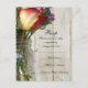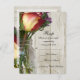 Durchsichtiges Glaskeramikglas mit roter und gelber Rose und lila, weißen und gelben Wildblumen. Ein schönes Thema für eine natürliche, sommerliche, frische Hochzeit im Freien. Sommer Wildgarten Thema, mit hellweißgetünchten Holzplanken im Hintergrund. Alle Designs Copyright © www.CustomInvitesOnline.com