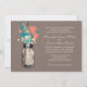 Originelle Illustration von La Bella Rue. Ideal für eine Hochzeit im Landhausstil oder vielleicht nur Liebe Mason Jars! Ein Burlap Textur Hintergrund mit dem hängenden Mason Jar gefüllt mit Zweigen, aquamarine, Korallen und cremefarbene Wildblumen . Wenn Sie Fragen zu diesem Design haben oder eine Farbänderung gewollt haben, schicken Sie mir bitte eine E-Mail an paula@labellarue.com Auch Karo für die Hochzeitssuite, INVITATION, UAWG, EMPFANG und GÄSTES SITZCards passend