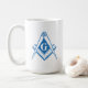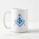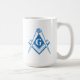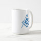 Große, 15-Unzen-Tasse für den Freimaurer-Kaffee. Weiße Tasse mit blauem, masonischem Emblem.