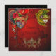 Schöner, roter Hintergrund mit einem eleganten, roten Blumenrahmen, der mit drei wunderschönen, verzierten Masquerade-Maskeraden geschmückt ist. Personalisieren Sie Ihre Veranstaltungsinformationen. Ändern Sie den Text zu lesen Quinceanera, Bat Mitzvah, 90., 100., 60. oder jedes Geburtstagsmädchen, für das Sie ein Party werfen.