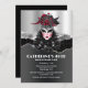Das Gesicht einer wunderschönen Frau mit blass weißer Haut hat rubinroten Lippenstift und eine Imitat silber-schwarze Maske, die mit rote Rosen und Federabfall überzogen ist. Sie ist Set gegen ein Imitat glänzend silber und schwarz Hintergrund, die bearbeitbare weiße Vorlagen für Ihre benutzerdefinierte Formulierung hat. Dieses elegante, luxuriöse, trendige und gläserne Design ist ideal für einen Bachelorette, Geburtstag, 16 . Geburtstag oder Quinceanera Party. Personalisieren Sie einfach die bearbeitbaren Vorlagen, um Ihren besondere Anlass zu Anzug.