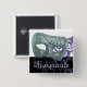 Viereckiger Knopf mit lila Spitze über Schwarz, wunderschöner Maskenwald mit blauen, goldenen, grünen, lila und fuchsienfarbenen Bändern mit glänzender Silberbesetzung. Anpassbarer Text in silberner französischer Schrift. Siehe dazu passender großquadratischer Premiummetall-Schlüsselanhänger und quadratische Halskette. Sehen Sie sich die gesamte Mardi Gras Buttons & Buttone Kollektion in den SPEZIELLEN TOUCHS an. | Abschnitt Gastgeschenke.