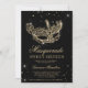 Ein modernes, elegantes und glamouröses 16 . Geburtstag mit einem handgezeichneten vergoldeten Glitzer-Maskerade mit vergoldeten Glitzer-Diamanten-Glitzern auf einem bearbeitbaren schwarzen Hintergrund mit goldenem Glitzer auf der Rückseite.