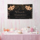 Für eine mädchenhafte und glamouröse Quinceañera, 15. Geburtstagsfeier. Ein stilvoller schwarzer Hintergrund. Dekoriert mit Imitaten vergoldeten Glitzer Staub und Maskerade Masken. Personalisieren und einen Namen hinzufügen.