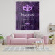 Für eine mädchenhafte und glamouröse Quinceañera, 15. Geburtstagsfeier. Ein tiefes lila Blumenmuster als Hintergrund. Dekoriert mit Imitaten Glitzer Staub, Maskerade Maske und ein Tiara. Personalisieren und einen Namen hinzufügen. Kann als Begrüßungsbanner, Party-Wanddekoration und als Foto-Standbanner verwendet werden.