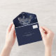 Eine moderne, schicke und glamouröse QUINCEAÑERA mit handgezeichneter silberner Glitzer Maskerade mit silbernen Glitzer-Diamant-Glitzern auf einem dunkelmarineblau Aquarell mit uAwg alle in einer Einladung.
