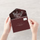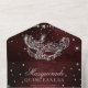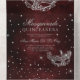Eine moderne, schicke und glamouröse QUINCEAÑERA mit handgezeichneter silberner Glitzer Maskerade mit silbernen Glitzer-Diamant-Glitzern auf einem dunkelroten bordeauxfarbenen Aquarell mit uAwg alles in einer Einladung.