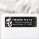 Fügen Sie Ihrem Halloween-Postfach mit diesem Maskerade Skull-Rücksendeetikett einen spukhaften und eleganten Flair hinzu. Mit einem weißen Schädel mit einer lila Maskeradenmaske und einer Pfauenfeder Pop dieses Design vor einem schwarzen Hintergrund mit goldenen Spinnennetzen - die perfekte Touch für Party Einladungen oder saisonale Korrespondenz. Vollständig editierbar mit Ihrem Familiennamen und Ihrer Adresse. Ideal für Halloween-Hochzeiten, Maskenfeiern oder gotische Feiern.