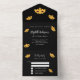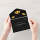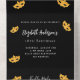 Ein schwarzer Hintergrund mit vergoldeten Maskeraden aus Imitaten. Personalisieren Sie Ihren Namen und die Details. Weiße Buchstaben.