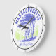 Display your Massachusetts state pride, with this charming wall clock. It features the Bay State heritage, showcasing a historical Minuteman forest home, design. An established 1788 gift, celebrating Revolutionary history. This Massachusetts wall clock, adds timeless Colonial charm to any home. Perfect for any one.