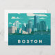 “Boston Skyline Art – Retro City Illustration, Massachusetts Night Cityscape, Urban Travel Decor Design“