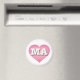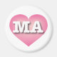Dieser Magnet verfügt über ein rosa Herz mit einem weiß gewaschenen Zentrum, das die fett, weiß, die Großbuchstaben MA, die offizielle Abkürzung für Massachusetts, die Bucht Staat enthält.