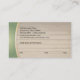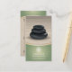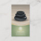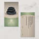 Diese Wellness-Centergeschäftskarte scheidet Serenity aus. Drei Massagesteine werden auf einer sauberen hölzernen Oberfläche gestapelt, die mit einer gebogenen Platte des weisen Grüns unten koordiniert. Der Handelsname wird durch eine Sonneverzierung entweder mit einer Website oder einer Telefonnummer unten erhöht. Die hölzernen Platten werden auf der Rückseite wiederholt, um alle Kontaktinformationen plus einen Bereich für Verabredungs-Erinnerungen zu zeigen. Die Sonneverzierung kann durch Ihr eigenes Logo oder anderes Bild ersetzt werden, wenn sie gewünscht wird. Verfügbar in den abwechselnden Farben mit zusammenpassenden Produkten.