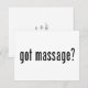 Nach dieser sehr beliebten Werbung haben wir dieses niedliche "Got Massage?"-Design auf vielen Produkten got, damit Sie es auf Ihren Massage-Visitenkarten verwenden können, Dankeschön-Karten, oder als Kundengeschenke. Erhältlich in schwarzem oder weißem Text.
