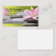 Trendy schöne Massage Therapist bearbeitbare Visitenkarten mit einem entspannenden Hintergrund-Bild mit einer Lilie Blume und Steine und lässige, aber berufliche Text Design können Sie online anpassen. Ein Auge angenehme Calling Card, die Sie als Visitenkarte an Kunden ausgeben können oder ihren nächsten Termin auf der Rückseite schreiben können.