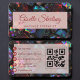 Professional black opal business card for massage therapists featuring a QR code design. Created so clients can instantly save your contact details, view services, or book massage appointments while showcasing a calm, upscale wellness aesthetic. Ideal for private practices, spas, wellness studios, and referrals. Editable text and QR destination. Clean print-ready layout.