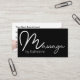 Massage Therapist Termin Visitenkarten Design Vorlage erstellt mit einem eleganten Monogramm Stil auf der Vorderseite und Ihre Terminvorlage organisiert auf der gedreht Seite alles in schicken stilvollen Schwarz-Weiß.