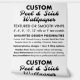 Maßgeschneiderte, robuste Vinyl Peel und Stick Wallpaper (2' x 12' Roll) leere Vorlage. Design, eigene Tapete für eine betont akzentuierte Wand oder einen ganzen Raum, 2' breite Rollen mit fünf Rollen-Optionen bis zu 12' Länge sowie eine Testuhr. Machen Sie Ihre ganz individuelle Anwendung glatter Vinyl oder texturierte Vinyl Tapete zu schaffen, um einen einzigartigen Wohnraum, Kinderzimmer oder Kinderzimmer themed Tapete, maßgeschneiderte Heimdekor oder Branded Retail, Bar, Café, Restaurant, Gastfreundschaft oder Büro-Umgebung. Diese individuell gestaltete, hochwertige Tapete ist für eine einfache Reinigung und Wartung konzipiert und macht die perfekte, individuell gestaltete Dekoration für Weihnachten, eine Babydusche, Hochzeit, Themenfeier, Firmenfeier oder andere besondere Anlässe. Anpassen durch Hochladen eines Fotos, Logos oder Designs und Hinzufügen von Text. Verwenden Sie die benutzerdefinierte Bearbeitung, um ein Muster mit fünf alternativen Tilingoptionen zu kacheln. Fügen Sie Ihr Logo und Ihr Branding für den geschäftlichen und geschäftlichen Einsatz hinzu.
