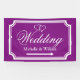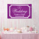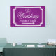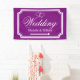 Banner für Hochzeitszeichen in benutzerdefinierten Farben. Qualität im Innen- und Außenbereich. Elegantes personalisiertes königliches lila-weißes Hochzeitsrichtungsschild, das links oder rechts zeigt. Drehen Sie den Pfeil nach Ihren Vorlieben. Helfen Sie den Gästen, ihren Weg zum Empfang-Party zu finden. Klassisches Design mit stilvollem Rahmen, ineinander greifenden Herzen und dem Namen von Braut und Bräutigam. Extravagante Skripttypografie. Verfügbar für links und rechte Richtung. Personalisierbare Richtungsschilder zum Aufhängen an Zaun oder Mauer. Auch praktisch für Parkplätze oder Cocktail Bar in verschiedenen Orten. Erhältlich in verschiedenen Größen für innen und außen. Kleine, mittlere und große Formen. Mit oder ohne Löcher und Haken. Schwarz/Weiß oder anpassbare Hintergrundfarbe. Fügen Sie der Vorlage Namen hinzu.