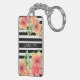 Schönes zeitgenössisches Pfefferminzgrün, Korallenrot und sonnige gelbe, florale Aquarellfarbe auf einem klassischen horizontalen schwarz-weißen Streifen Muster. Mit Raum zum Anpassen oder Personalisieren mit Namen, Monogramm oder Initialen Ihrer Wahl. Hübsches, prächtiges, modernes und skurriles Design für die elegante künstlerische Mode oder künstlerische Mode-Diva, angesagte Trendsetter, Vintage Retro-Art Stil oder Blume-Motiv-Liebhaber.
