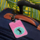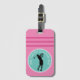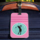 Für Damen Golfer: Fügen Sie Ihren Golfclub-Namen zu diesem individuellen Gepäckanhänger mit einer Golfer-Silhouette hinzu. Die hellen rosa und türkisfarbenen Farben machen das Gepäck leicht zu erkennen.