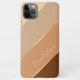 Moderne dunkelkaffeebräune, Bräune, Beige und gürlich glamouröse Imitate goldfarbene gestreifte Muster Handy Gehäuse. Mit Raum zum Anpassen mit einem Namen, Monogramm oder Initialen Ihrer Wahl. Schönes, modernes und cooles Cover für den Trend-geschickten und kunstliebenden angesagten Trendsetter, künstlerischer Motif-Liebhaber, der will, ihr Handy vor Staub und Schmutz, Abnutzung und Tränen zu schützen. Dieses Design ist für Apple iPhone 6, 7, 8 Plus, 10 oder X, XR, XS, 11, 12, 13 Mini, 14, 15 Plus und Pro Max Handy Hüllen erhältlich. Zeigen Sie Ihren Stil, sehen Sie in der Mode und fühlen Sie sich stilvoll mit einem einzigartigen Design auf einem mobilen Zubehör Ihrer Wahl.