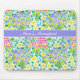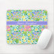 Ein hübsches Blumenmousepad mit individualisierbarem Mousepad, mit einem Muster aus rosa, gelben und blauen Primaten, aus einem handgemalten Aquarellbild von Judy Adamson.