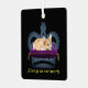 Ein trauriger Korgi, der auf einem lila Kissen liegt, mit Goldblechen, einer Krone im Hintergrund, vollständig anpassbarer Text