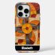 Diese faszinierende Handyabdeckung zeigt einen stark strukturierten, impasto-ölfarbenen Stil mit einem zentralen kreisförmigen Motiv, das von abstrakten geometrischen und Bio Formen in warmen Orangen, Gelb, Rot und Braun umgeben ist und mit blauen Akzenten versehen ist. Dieses künstlerische, taktile Design fügt Ihrem Gerät einen lebendigen, anspruchsvollen Flair hinzu. Ein schwarzes Bar am unteren Rand bietet Personalisierung mit einem Namen wie "Elizabeth"; wenn man keinen Namen will, kann man ihn und alle anderen Elemente, die man nicht mag, aus dem Designwerkzeug entfernen und ein wirklich maßgeschneidertes Smartphone-Accessoire erstellen.
