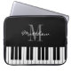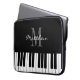 Schwarz-Weiß Flügeltasten, kundenspezifische Monogramm Laptop-Hülle. Elegantes Skripttypografie-Design mit Tastatur. Personalisierte Geschenkidee zum Geburtstag für Klavierspieler, Musiklehrer, Musiker, Pianist, Dozent, Student, Mutter, Vater, Sohn, Tochter, Mitarbeiter, Chef, etc. Moderne Laptop-Covers sind in verschiedenen Größen erhältlich: 10 13 und 15 Zoll. Anpassbare Hintergrundfarbe.