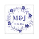 Personalisierte frisch vermählte Monogramme und Hochzeitstermin vorfarbige Briefmarke. Es ist mit einem runden Kranz aus hübschen Blume und Blattwerk dekoriert. Der zentrale Teil wird von großen Anfangsbuchstaben mit einem Ampersand aufgenommen. Das Hochzeitdatum wird in kleinerem Schriftart unter den Monogrammen gedruckt. Liebliche Briefmarke, die Ihnen helfen, Ihre Gewerkschaft zu feiern und Ihre Hochzeitseinladungen, Favoriten und andere verwandte Gegenstände zu verbessern.