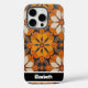 Dieses auffallende Handy-Cover zeichnet sich durch ein wunderschön strukturiertes, impasto Ölgemäldemuster aus, das ein aufwändiges mandalaähnliches Blumendesign in lebhaften Orangen, Gelben und Cremes vor einem tiefen grauen Hintergrund zeigt. Die markanten, taktilen Pinselstriche verleihen ihm einen raffinierten, künstlerischen Flair. Ein schwarzes Bar am unteren Rand bietet Personalisierung mit einem Namen wie "Elizabeth"; wenn man keinen Namen will, kann man ihn und alle anderen Elemente, die man nicht mag, aus dem Designwerkzeug entfernen und ein wirklich maßgeschneidertes Smartphone-Accessoire erstellen.