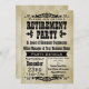 Rustikale und Vintage Western Country Salon Themenparty Einladung kann auf den Anzug Ihrer Veranstaltung angepasst werden. Der Hintergrund ist in beige gehalten und die Dekoelemente sind im antiken Stil gehalten. Ideal für ein Party im Ruhestand oder kreieren Sie Ihren eigenen personalisierten Anlass.